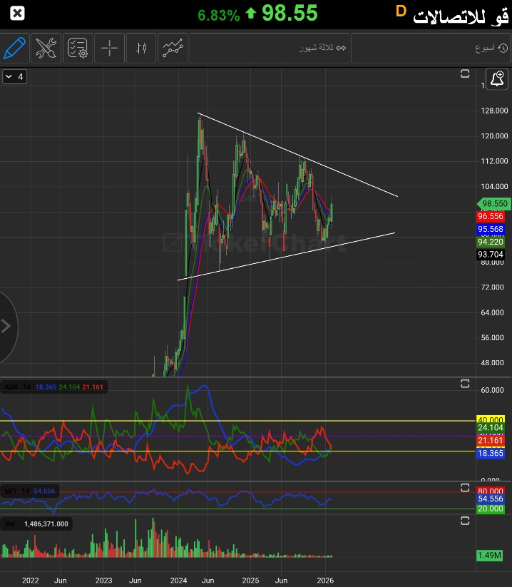 مبروك نسبة قو للاتصالات 101.40 فوق 98.60 ممتاز وبيكمل وهي وقف المستعجل https://cityupload.io/2026/02/Screen...ickerChart.jpg |
