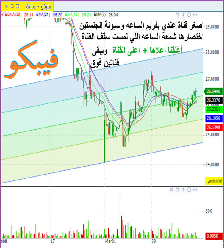 فيبكو على فريم جلستين فقط ظهرت شمعة حلـوه مؤثره رقمها 25.70 ما دمنا فوقها نقول ان شاء الله تظهر قريب قناة صاعده