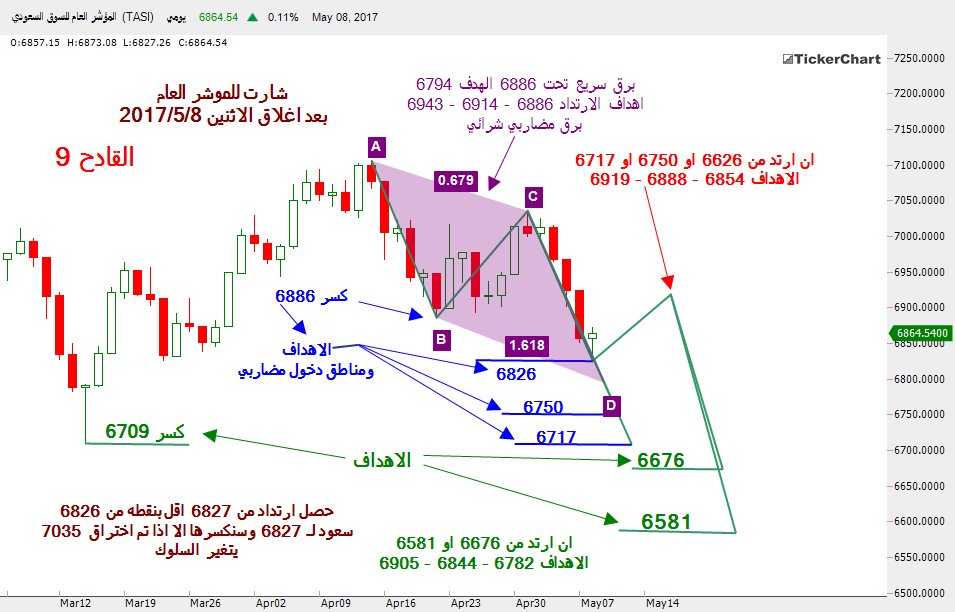 شارت للموشر العام من اخر قاع صاعد 6886 الي اخر قمه هابطه 7035