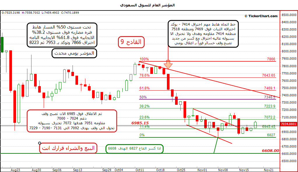 تحديث شارت السوق بوقف 6985 بسيوله واغلاق والشارت مختصر