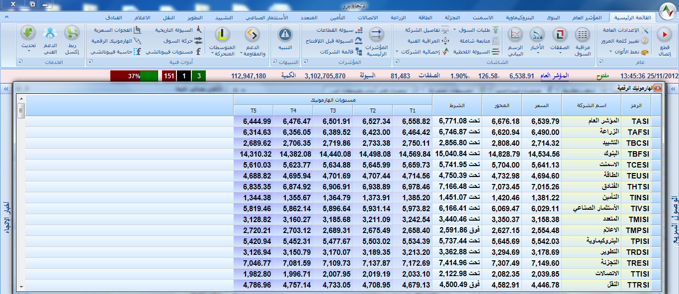 المتابعة اليومية للسوق ليوم ألأحد الموافق 25 / 11 / 2012
