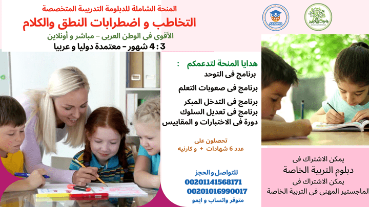 الدبلوم المتخصص فى التخاطب واضطرابات النطق المعتمد عربيا و دوليا المنحة الشاملة الأصلية واحة التميز للتدريب ، بخصم 40 % أونلاين ومباشر ، تبدأ الجمعة القادم، على مدى 3 : 4 شهور ، ، بعدد 7 شهادات تدعمكم ، مع خصم إضافي للمجموعات ، دبلومة تدريبية متخصصة بتنجز معكم فى الوقت و المال و المجهود وبيعدكم للعمل بصورة مباشرة نظرى و عملى و يكسبكم مهارات العمل و وكمان عدد 5 برامج تدريبية كهدايا قيمة بتدرسها معنا لتزيدكم عمقا و تخصصا : 1 - برنامج فى التوحد 2 - برنامج فى صعوبات التعلم 3- دورة فى التدخل المبكر 4 - برنامج تعديل سلوك 5 - دورة اختبارات ومقاييس و يمكنكم الاشتراك فى الدبلوم التدريبى فى التربية الخاصة البيدج الرئيسى لواحة التميز للتدريب على فيسبوك https://bit.ly/2KdZv6C لتسجيل بياناتكم لسهولة التواصل معكم على الرابط التالي https://cutt.us/G0e4T الموقع الالكترونى لواحة التميز للتدريب http://wahaacademy.org/ أهمية العلاج بالفن واحة التميز للتدريب 2021 https://youtu.be/YuHb3ntGYqY للتواصل و الحجز واتساب 00201141568171 00201016990017 https://i.suar.me/7Xz4w/l ملاحظة : تم فتح باب الاشتراك لدفعة ماجستير تدريبى فى التربية الخاصة بعد توقف وصل سنتين لم يتم قبول أى دفعات 6 : 8 شهور محــاور دبلوم فى التخاطب و اضطرابات النطق والكلام : اللغة والصوت والنطق والكلام واضطراباتهم اضطرابات النطق والكلام التلعثم اللدغات الحبسة الكلامية الخنف الحذف والإبدال التشوية التحريف الإضافة اضطرابات اللغة تأخر النمو اللغوى وأسبابه و علاجه العى ( الأسباب – التشخيص – العلاج ) اضطرابات الصوت الوهن الصوتى البحة الصوتية الاستئصال الحنجرى احتباس الصوت الهستيرى طفرة الصوت الغير مكتملة التأهيل التخاطبى لحالات التوحد الاوتيزم التأهيل التخاطبى لضعاف السمع وزارعة القوقعة التأهيل التخاطبى للإصابة الدماغية فنيات الشخيص ووضع الخطط العلاجية قراءة التقارير إدارة الجلسات باحــــترافية بالإضافة إلى الفنيات العملية بنكهة خبرات السنين أهم الفــــــروق الدقيقـــــة بين العـــــــى و الحبســـــة الكــــــلامية بـــــدرجاتهمـــــا الفـــــــــــروق الجــــــوهرية بين الأبــــــــــراكسيا و الديسيــــــليا و الأفـــــــــازيا التـــــأهيل التخــــــاطبى للاستئصــــــال الحنجـــــرى بالإضافة لشرح وافى لفنيات عــــلاج أمــــراض الصـــوت (البحـــــة الصــوتية – الخنـــــف هدايا المنحة الشاملة للدبلوم التدريبى : برنامج فى التــــــوحــــــــد التشخيص التأهيل التخاطبى للتوحد برنامج قراءة العقل للتوحديين برنامج تأهيل أخصائي صعوبات التعلم برنامج فى إعداد أخصائى إدارة و تعديل السلوك دورة فى التدخل المبكر ( البورتيدج ) دورة فى الاختبارات و المقاييس : اختبار اللغة المعرب د أحمد أبو حسيبة مقياس كارز - مقياس جليام فى تشخيص التـــــوحـــــــــد المزيد و المزيد من المفاجآت : الاعتمــادات عـــــدد 7 شهادات شهـــــادة بالـــدبلوم التــــدريبى من المعهد الامريكى للدراسات التربوية و تنمية المورد البشرى AMERICAN INSTITUTE FOR EDUCATIONAL STUDIES AND HUMAN RESOURCE DEVELOPMENT بشهادة معتمده بختم النسر حكومي يمكن التوثيق خارجية مصرية برسوم إضافية عدد 4 شهادات من واحة التميز للتدريب بالمحتوى و الهدايا شهـــادة بالتـــدريب العملى من واحة التميز للتدريب كارنيه عضوية من واحة التميز للتدريب يمكن طلب اعتمادات إضافية برسوم إضافية لمن يرغب للحجز والاستفسار :0201016990017 – 0201141568171 متوفر واتس وفايبر https://i.suar.me/MG4P0/l https://i.suar.me/YjeMG/l https://i.suar.me/JGgWX/l #الدبلومة_دبلوم #التخاطب #التوحد #صعوبات_التعلم #تعديل_السلوك #أخصائية_أخصائى #التربية_الخاصة |