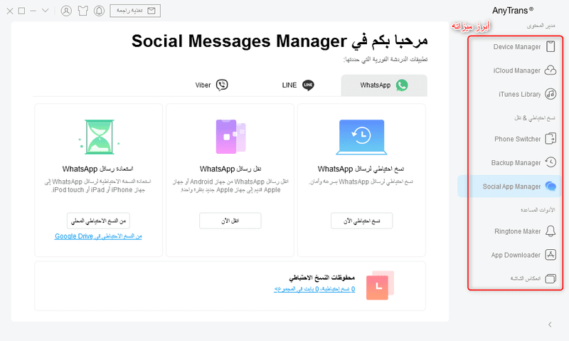 https://i.suar.me/ByxGN/m برنامج AnyTrans عبارة عن أداة احترافية للنقل والنسخ الاحتياطي. ليس فقط نقل أي محتوى من جهازك على الحاسوب والعكس، بل نقل محتويات من جهاز إلى جهاز أخر حتى ولو كان أندرويد. أبرز ميزاته: 1. النقل من iOS إلى iOS و من Android إلى iOS بنقرة واحدة 2. نقل الصور وغيرها إلى كمبيوتر (PC و MAC) وبالعكس بسهولة 3. النسخ الاحتياطي لبيانات الايفون/الايباد واستعادتها 4. نقل رسائل whatsapp وline و viber من iOS إلى iOS و من Android إلى iOS 5. نقل التطبيقات من آي-فون إلى آخر دون تنزيلها في كل مرة 6. تنقل كل محتويات الـ iCloud إلى حاسوبك أو حساب iCloud آخر وبضغطة زر 7. تحويل الصور من HEIC إلى JPG 8. انعكاس الشاشة للـ PC أو MAC 9. تسجيل و التقاط الشاشة 10. تعيين نغمة رنين بأغنية مفضلة موقع رسمي: https://www.imobie.com/ar/anytrans فيديو تعليمات حول كيفية نقل رسائل الواتس اب من اندرويد الى ايفون باستخدام هذا البرنامج: https://www.youtube.com/watch?v=AXZ7SPtK19I&t=8s https://i.suar.me/QEyNV/m |