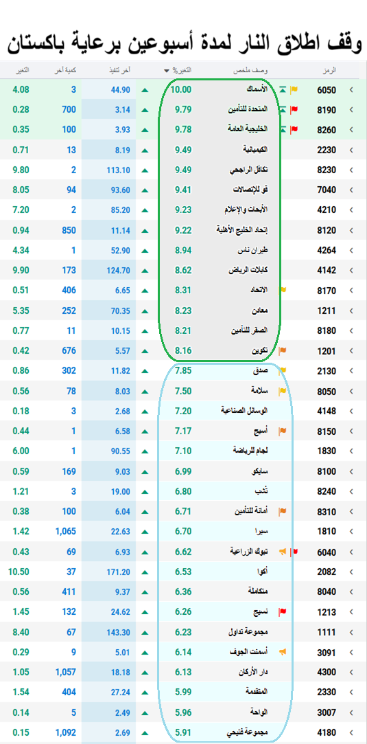 باقي الـ 200 شركه يدبون ببطء شديد لانهم ما يبون لفت النظر الين يصعدون 30% ثم خذ تفلت ورقص على كيفك