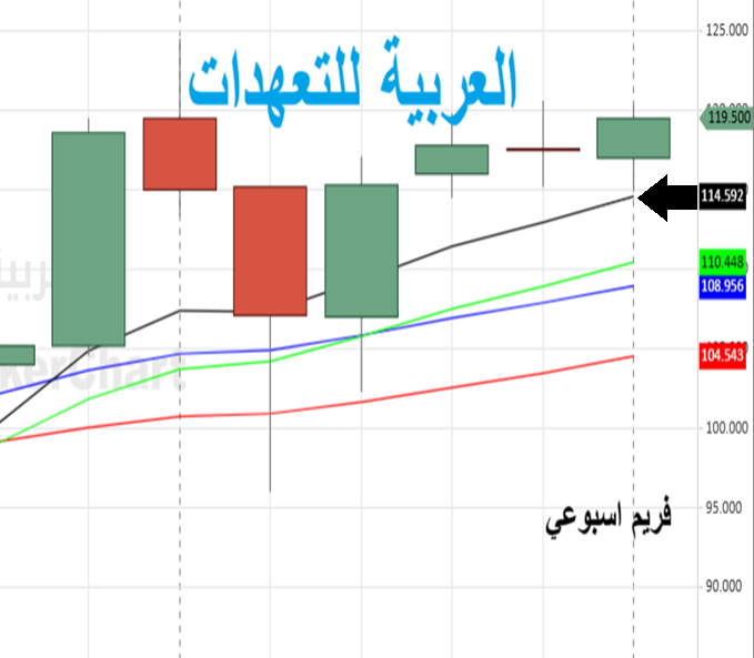 العربيه للتعهدات الفرصه اللي اعطاها للدخول بلمس المتوسط الاسود اصغرهم عند 114.70 وعاد فوق لاكمال موجته