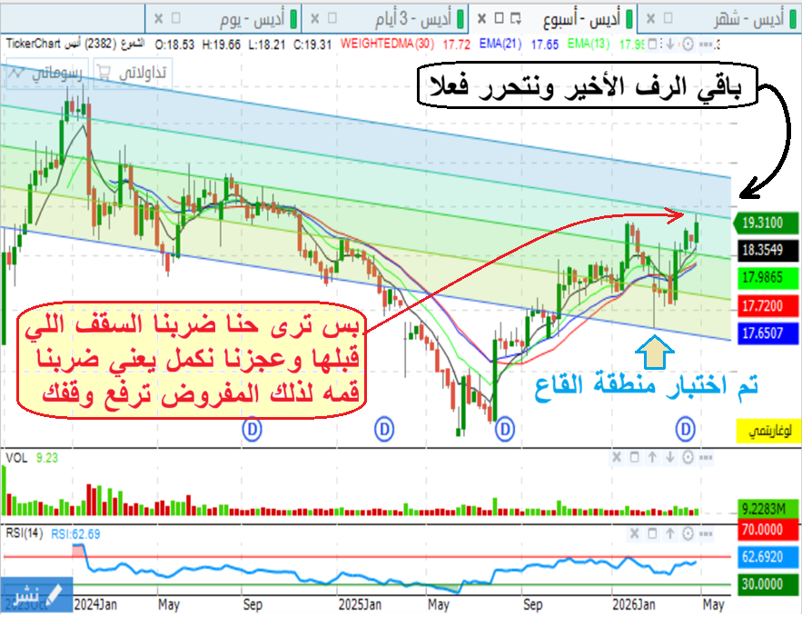 الان ساطرح اسهم اخترقت اسبوعي وباقي تختبر او تكمل صعود وتختبر بعدين : -
