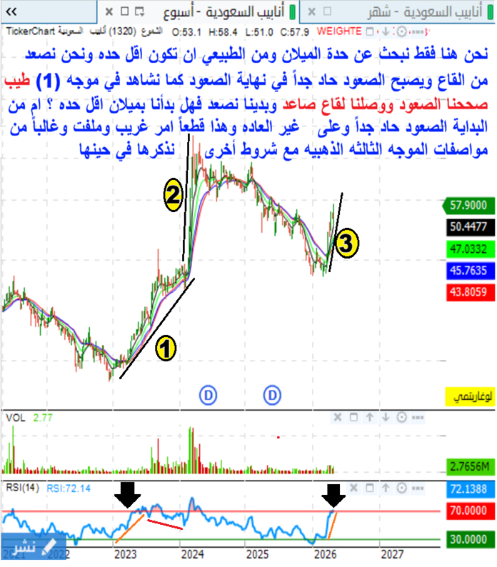 هذا مثال استباقي على ادله تعطي انطباع ان السهم هذا في موجه ثالثه