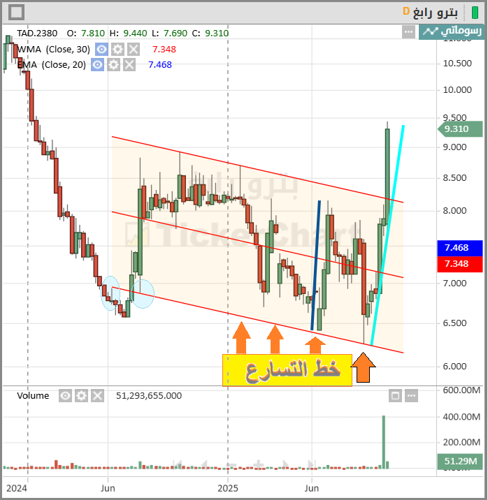 او يكون باختراق رقم وحظور زمن يكون دائما وهو صاعد لان الشرط اختراق طيب ايش قصة تسارع سهم بترورابغ ؟؟ الحكايه حكاية هبوط وملامسة رقم معين او ترند معين وانتظار بالطبع حظور زمن معين احنا كمحللين فنيين نبحث في المكان اكثر من الزمن وهو عباره عن خط ترند مجرد ما يلمسه يجن جنون السهم سواء فوق او تحت دعونا نتامل بالشارت الاسبوعي .. ونبحث اين كنز هذا السهم الحقيقي وين موقعه عشان ابني عليه وانتظر حظور السهم بعد سنوات عند هذا الرقم تحديداً دون غيره ![]() |