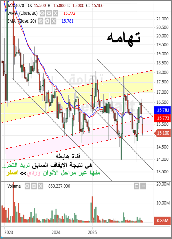 تهامه للحين غارق بالسلبيه بس ابي حركته على مدى عام 2025 بعد ايقافه قبل سنه وشهرين الى نهاية 2024 رجع للسوق جلس يتحرك بين 17 و 14 عشر شهور خلونا ندرسها
