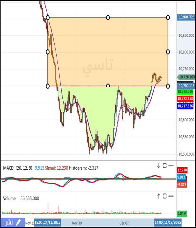 المؤشر من 1 ديسمبر الى 3 ديسمبر وهو يتلوى بالقاع عند 10500