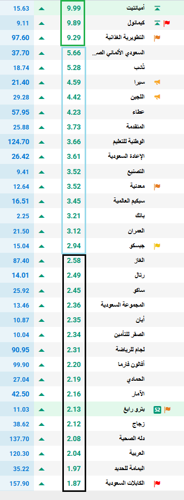وهذولا نموذج عن بعض الاسهم اللي مطنشه المؤشر وعمق السوق وتهدي وتسرع في حال نساها الناس هذي امثله ومثلهم فيبكو واليمامه للحديد وسابك راعية الارجاف في الويك إند البحري ومبكو على سبيل المثال مع الافتتاح طاروا بسرعه وجلسوا فوق وطنشوا السوق عشان اللي يخرج ما يقدر يرجع واقصد المضاربين |