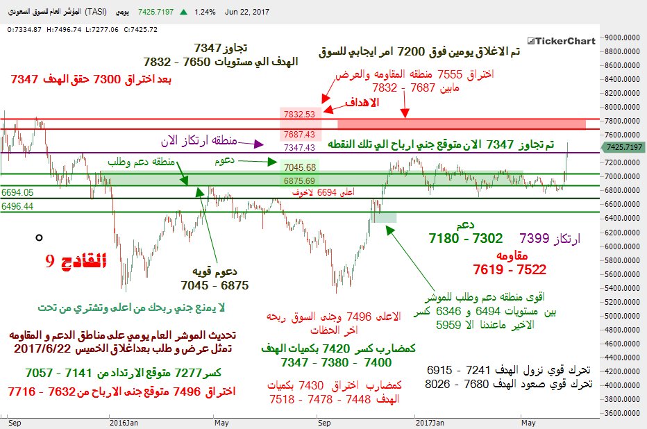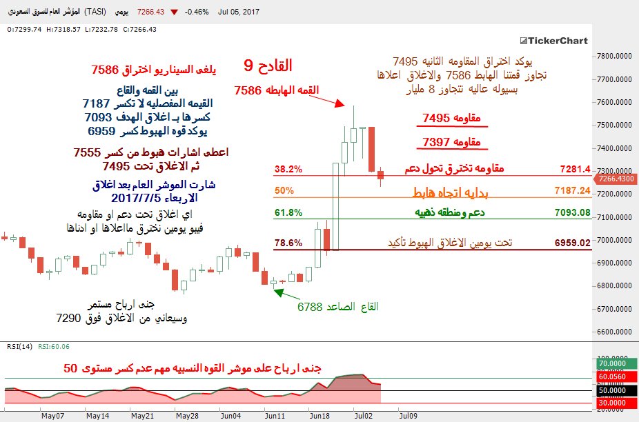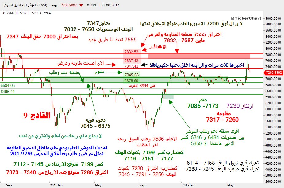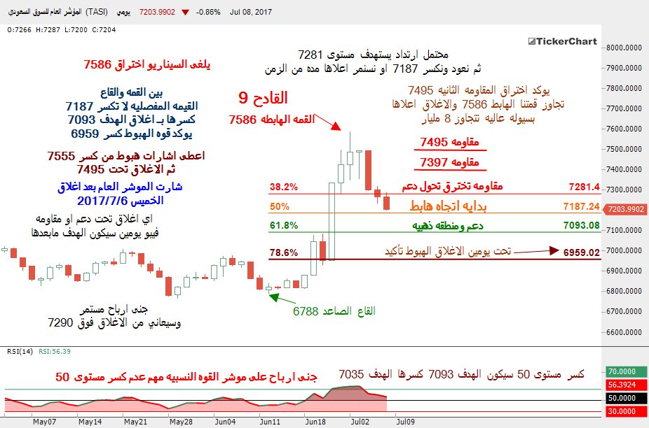 تحديث شارتات الموشر العام بعد اغلاق يوم الخميس 2017/7/6