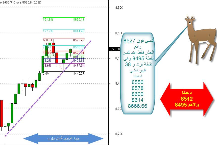 الحمدلله على توفيقه اغلاق رائع 8605 واهم شي 8578 لانقفل تحتها لجلسة الخميس باقي لي في ذمته 60 نقطة بعدها سوف اتنحى جانبا حتى يتم الاقفال وارى المؤشرات لجلسة الاحد امامنا 6614 8666.66 8675 دعمنا 8578 كسرها نعود الى الدوامه فوقها السوق رائع 8566.66 8550 والله اعلم واحكم هذا اخر تقرير اكتبه بالفتره الحاليه للاستجمام جزاكم الله خيرا ونفع الله بماتقدمون عراويكم |