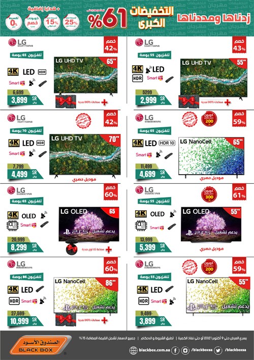 تخفيضات الصندوق الاسود الكبرى على الاجهزة المنزلية والالكترونية والمكيفات والشاشات تصل الى 61%