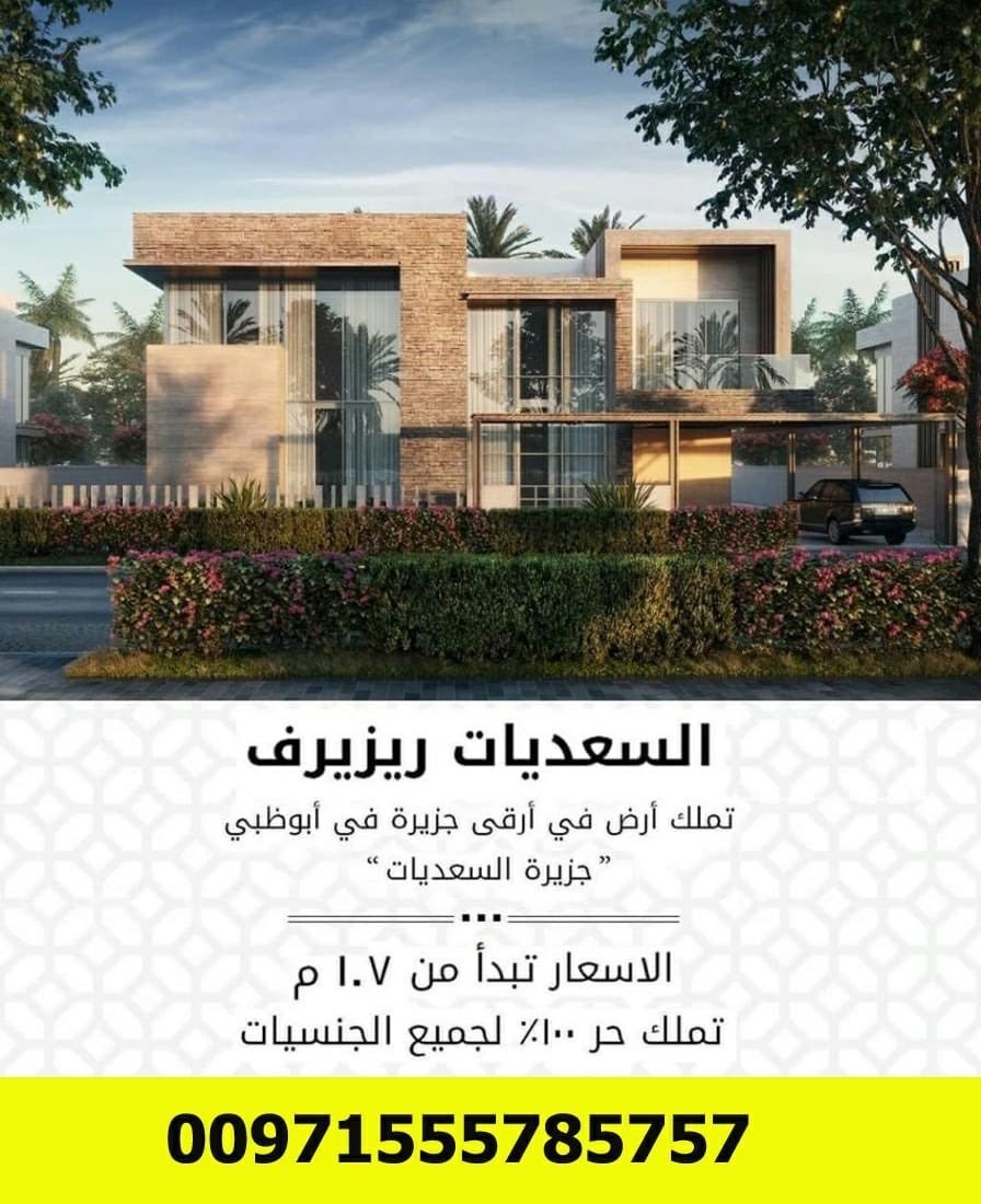 أراضي للتملك الحر في مشروع السعديات ريزيرف 00971555785757
