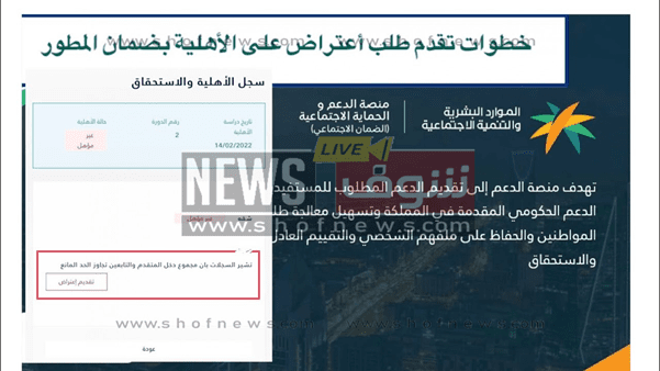 متى يتم قبول الاعتراض في الضمان الاجتماعي المطور؟ 1444 وزارة الموارد البشرية تجيب صرح إدارة خدمة العملاء في وزارة الموارد البشرية لموقع شوف نيوز الاخباري الإجابة على سؤال المستفيدين عندما سأل وقال، متى يتم قبول الاعتراض في الضمان الاجتماعي المطور؟ عبر الصفحة الرسمية ب، حيث تتلقى وزارة الموارد البشرية آلاف الطلبات كل يوم وهناك عدد لا حصر له من المواطنين يرغبون في التقدم بطلب للحصول على راتب معاش الضمان. وفرنا عبر موقعنا رابط استعلام الضمان الاجتماعي الجديد. وعند رفع الطلب للوزارة يتعرض المستفيد لحالات رفض التأهيل وعدم القبول، وفي تلك الحالة يتم تقديم طلب اعتراض ولكن متي يتم الرد على قبول طلب اعتراض الضمان الاجتماعي المطور، ذلك ما سوف نوضحه عبر موقع شوف نيوز الإخباري. يهمك التعرف على بعد التعديلات الجديدة اعرف شروط استحقاق الضمان الاجتماعي للعاطلين. • نظام الضمان الاجتماعي المطور • متى يتم قبول الاعتراض في الضمان الاجتماعي المطور؟ • تقديم اعتراض الضمان الاجتماعي المطور • التسجيل في الضمان الاجتماعي الجديد 1444 المطور بالتفصيل sbis.hrsd.gov.sa • التسجيل في الضمان الإجتماعي المطور 1444 للمطلقة والأرمل والعزباء. • نظام الضمان الاجتماعي الجديد السعودي شروط استحقاق الدعم وطريقة التسجيل والتفعيل • شروط التسجيل في الضمان الاجتماعي الجديد 1444 • الضمان الاجتماعي المطور 1444 للمطلقات والسيدات رابط التسجيل والشروط الجديدة نظام الضمان الاجتماعي المطور https://i.suar.me/JOQ47/l أطلقت وزارة الموارد البشرية نظام جديد للضمان الاجتماعي وتم صدوره بأمر ملكي بهدف إيجاد الوسائل والإجراءات اللازمة لمساعدة المواطنين للاستفادة من الخدمات، بالإضافة إلى توفير الدعم المناسب للأسر الأشد فقرا والأكثر استحقاقا وضمان تلبية الاحتياجات الأساسية لجميع المؤهلين، كما يمكنك التعرف على كم الحد المانع للضمان الاجتماعي المطور بعد التعديلات الجديدة 1444؟. وقد تم وضع نظام الضمان الاجتماعي الجديد وفقا للتشريعات. كما تلتزم حكومة المملكة العربية السعودية بدعم الفئات الأكثر احتياجًا بما يتماشى مع أهداف رؤية 2030. في سياق الموضوع وضحنا ما هي شروط الضمان الاجتماعي المطور للموظفين؟. متى يتم قبول الاعتراض في الضمان الاجتماعي المطور؟ وضحت وزارة الموارد البشرية موعد الرد على طلب الاعتراض المقدم من المسجلين وذكرن أن الرد يكون في غصون 60 يوم بعد تاريخ رفع طلب الاعتراض على عدم التأهل، والنظر في فحص الطلب وقبوله في حالة استيفاء مقدم الطلب بالفعل لجميع الشروط التي تحددها الوزارة لاستحقاق المعاش. وضحنا عبر موقع شوف نيوز الإخباري خطوات تقديم اعتراض الضمان الاجتماعي المطور 1444 بعد رفض قبول الأهلية. تقديم اعتراض الضمان الاجتماعي المطور https://i.suar.me/4PWYA/l بعد التعرف على موعد الرد على قبول طلب الاعتراض يجب الآن معرفة خطوات تقديم اعتراض الضمان الاجتماعي المطور، ويجب اتباع الخطوات التالية لتقديم الاعتراض: • قم بتسجيل الدخول إلى حسابك على منصة الدعم والحماية الاجتماعية. • اختر تبويب الخدمات الإلكترونية. • ثم اختر تبويب الاهلية. • ستجد أمامك أسباب رفض طلب التأهل. • الآن يجب تقديم طلب الاعتراض. • قم بإرسال جميع الأوراق والمستندات التي تدعم اعتراضك من خلال النقر على تبويب إرسال. علاوة على ذلك وضحت الوزارة انه يقوم البرنامج بمراجعته الطلب مرة أخرى في غضون ستين يومًا، وإذا كنت مؤهلاً للحصول على راتب المعاش سيتم صدور الدفعة في الشهر التالي. كما ذكرنا حاسبة الضمان الاجتماعي الجديد. في نهاية مقالنا نحيطكم علم بان موعد صرف الضمان الاجتماعي لهذا الشهر أكتوبر/ ربيع الأول سيكون في اليوم الأول من شهر أكتوبر 2022. |