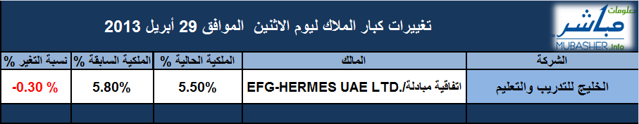تغيرات كبار الملاك ليوم الاثنين 29 أبريل 2013 ![]() |